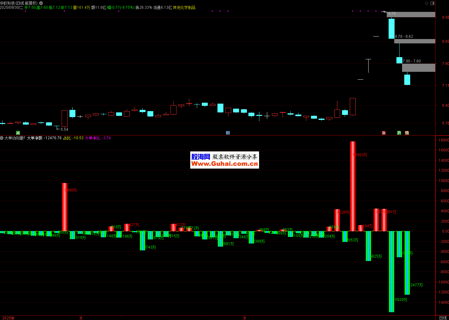 大单净额:计算主力买卖差额(大单买入-大单卖出),单位转为万元