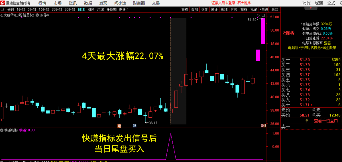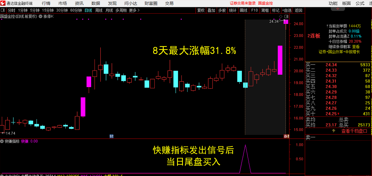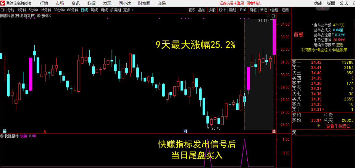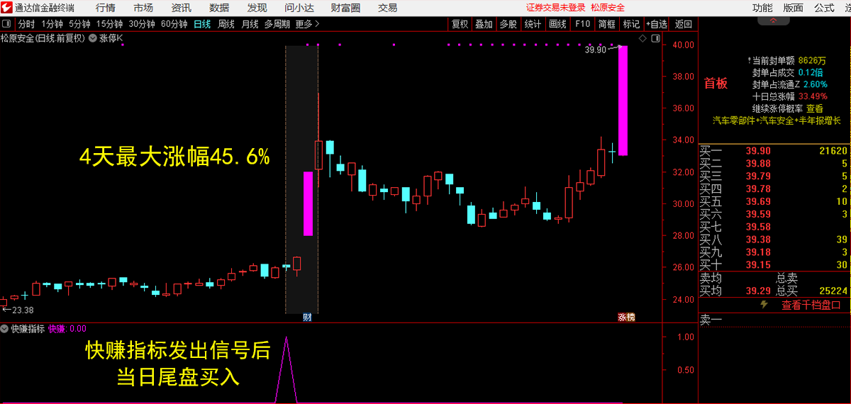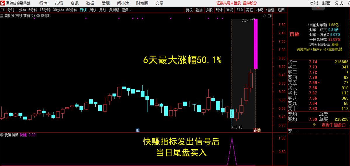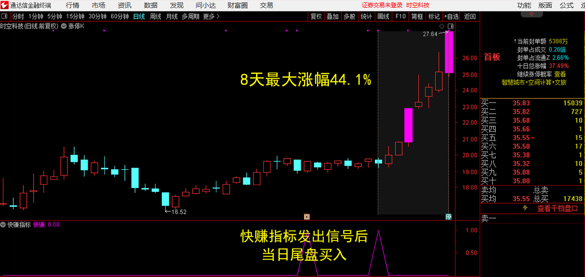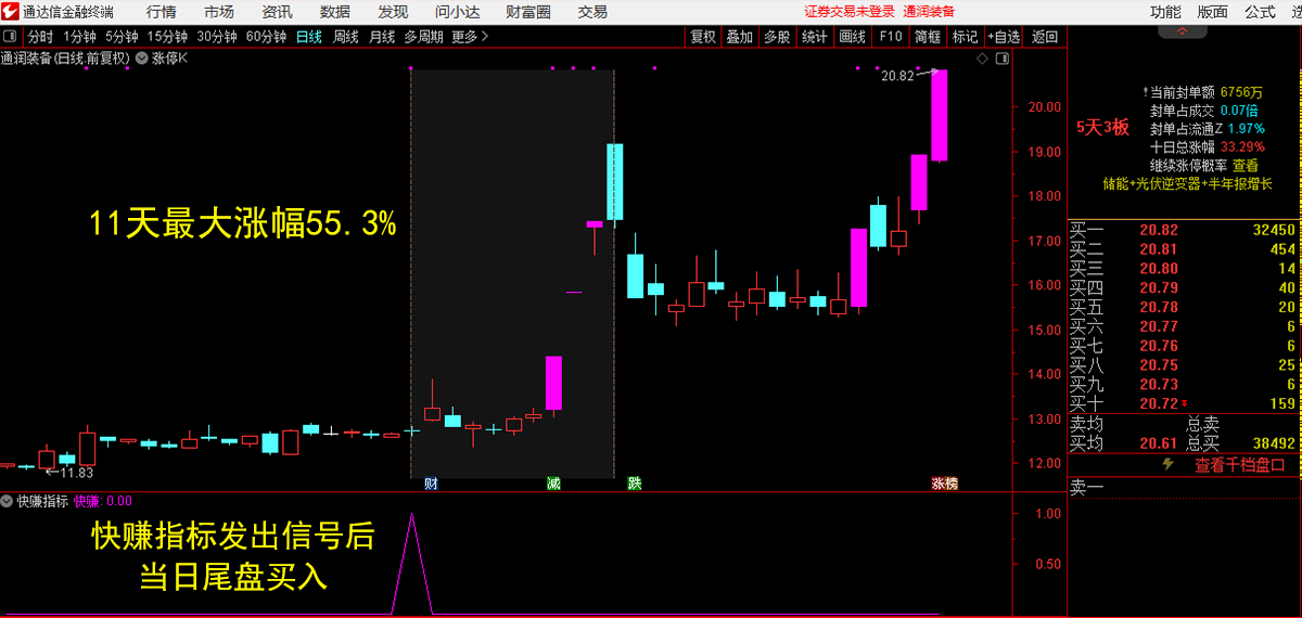 通达信快赚指标,经测试成功率高且赢亏比也高,轻轻松松快赚抓主升,每只票信号少,无未来函数,信号不飘移,用了多年,请放心使用下载