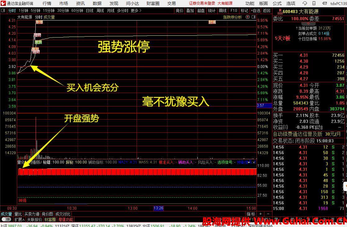 (1)案例1:开盘全为红块,强势涨停(大胆买入)