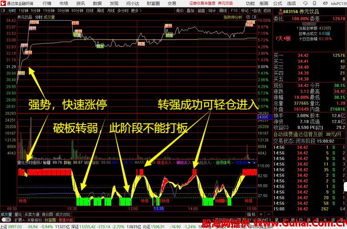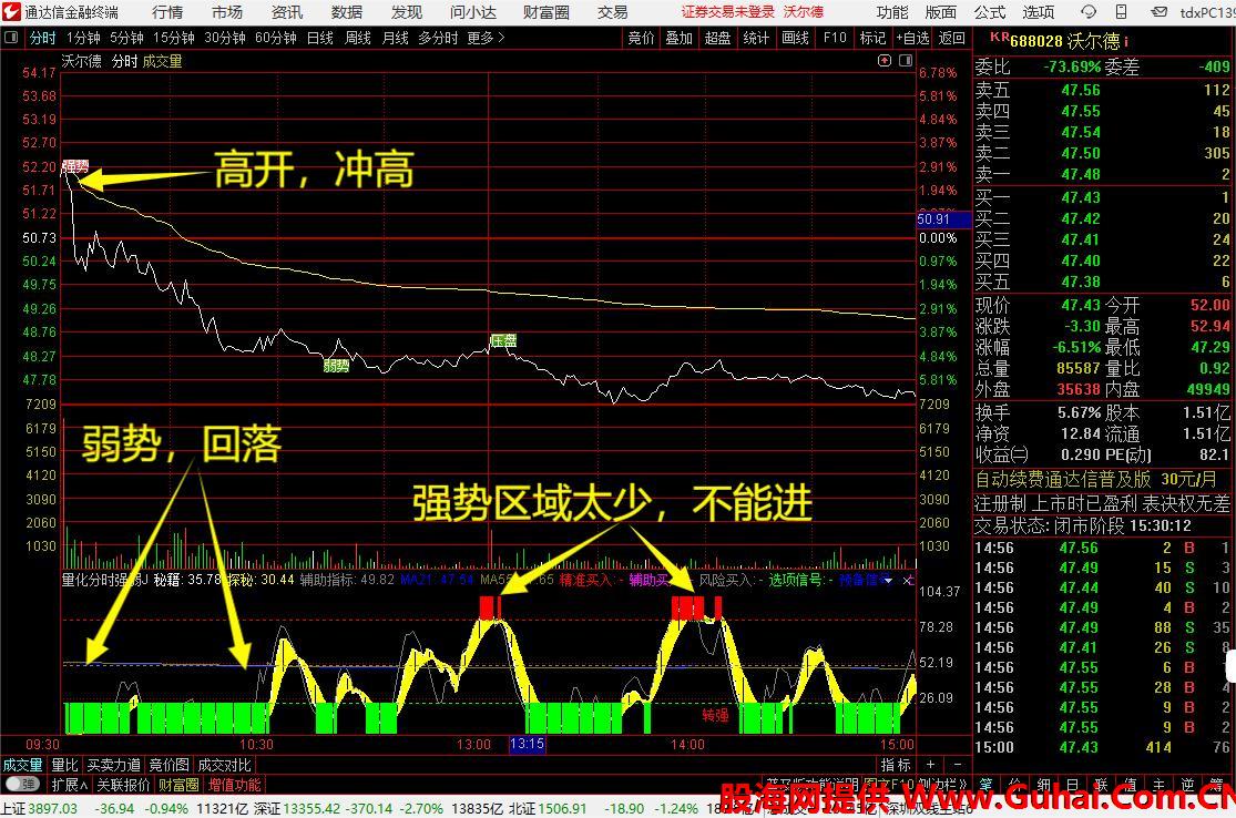 通达信【量化分时强弱】技术指标【超精准,赢在买入点的智能分时工具】