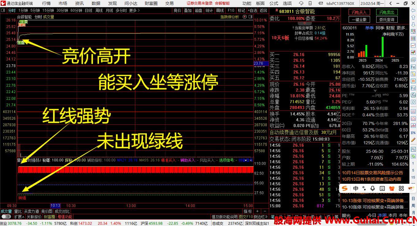 (2)案例2:分时竞价个股,开盘“未出现绿线”(大胆买入)