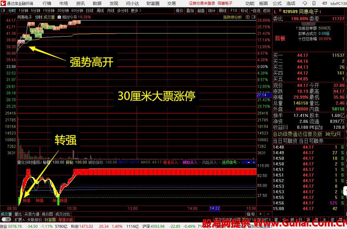 (4)案例4:分时超强选股,当日涨停,次日大涨7%