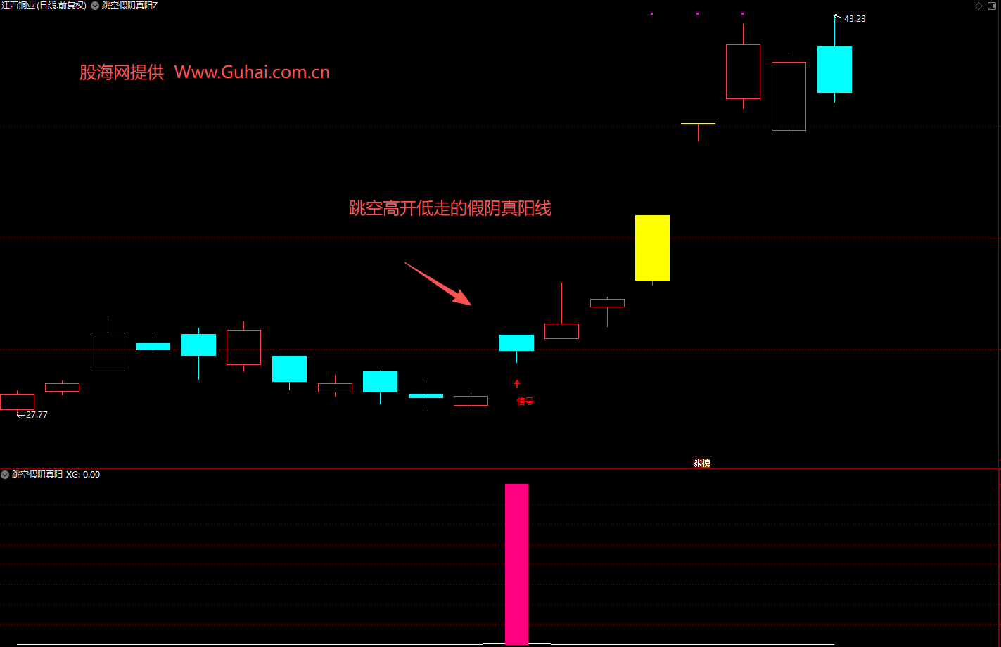 通达信跳空假阴真阳主幅图选股源码文件分享。