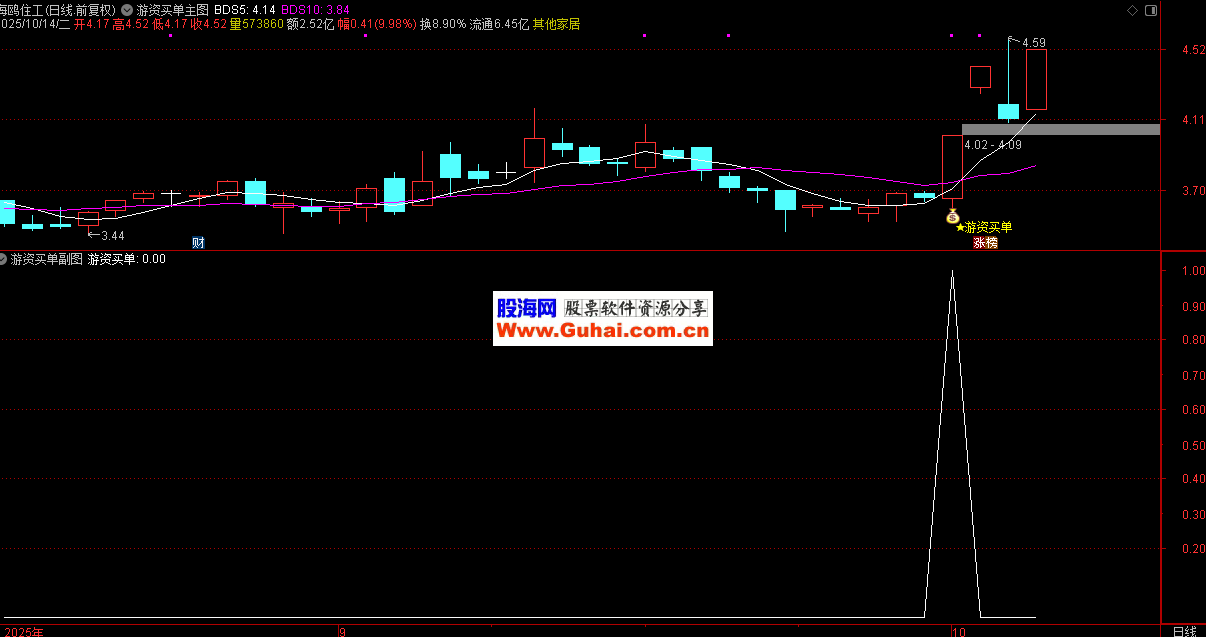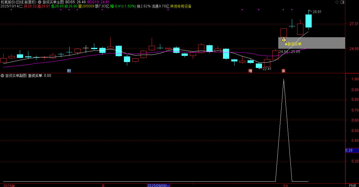 通达信【游资买单】主副图/选股 指标主要用于识别短期强势股。
