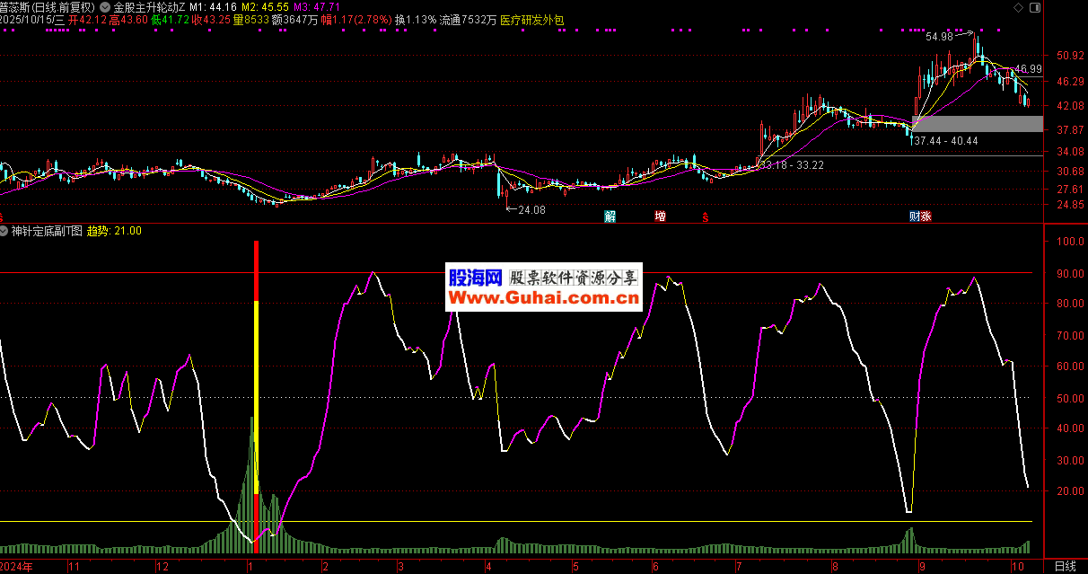 通达信〖神针定底〗副图/选股 红黄红三色预示趋势转折点 源码
