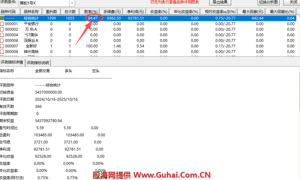 关于胜率:统计一年内以当日尾盘做买入参考,次日最高卖出胜率是84%(回测结果仅供参考,不做未来收益保证)。