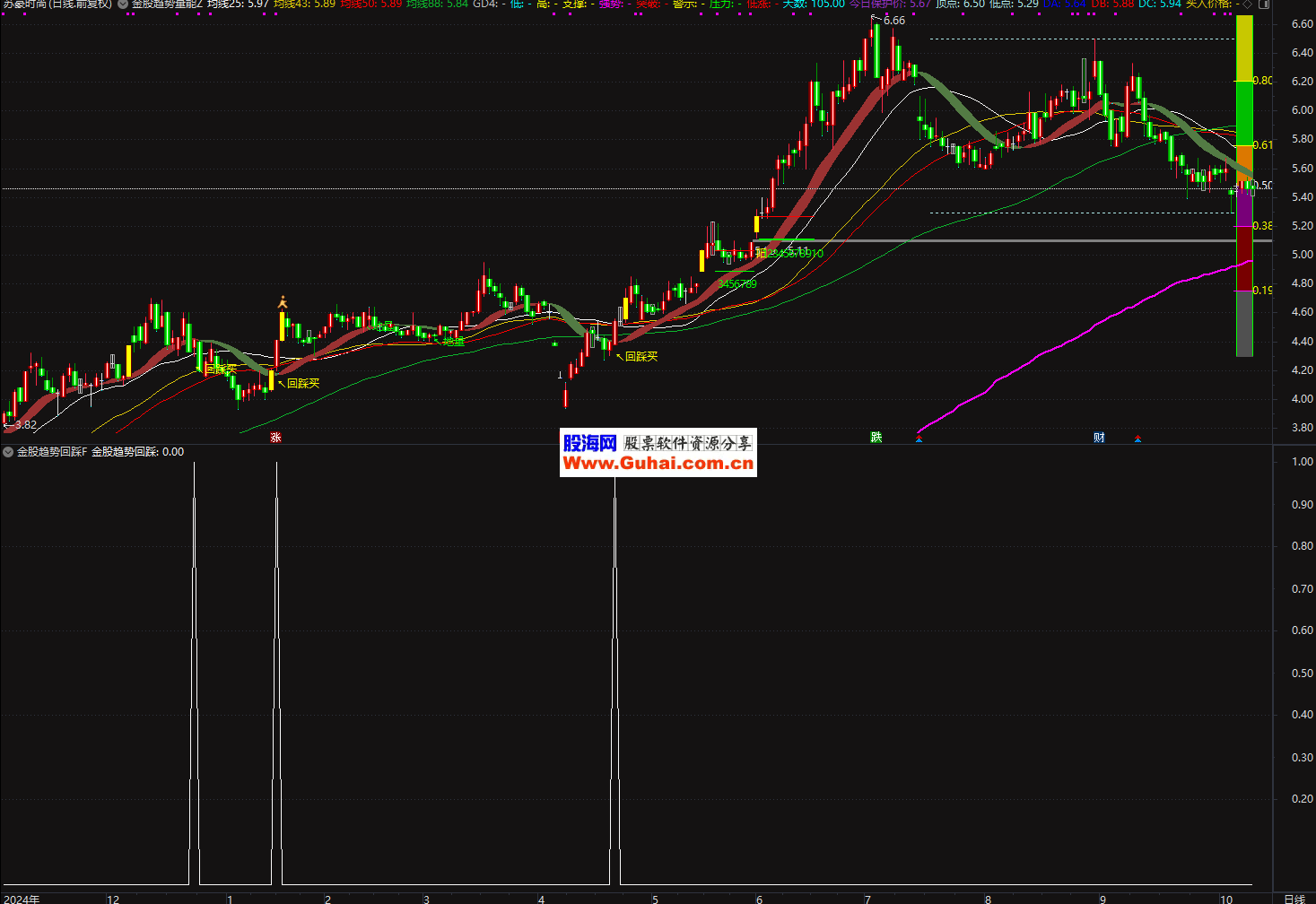 本指标是一款综合性的股票分析工具,融合了均线系统、斐波那契价格区间、庄家成本测算、买卖信号提示、量能分析等多重功能,可辅助投资者判断股价趋势、支撑压力位、潜在买卖点及风险控制点位,适用于各类交易周期的股票分析。