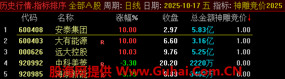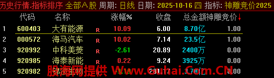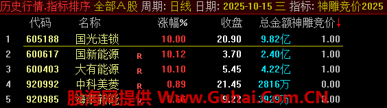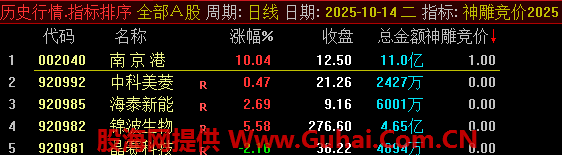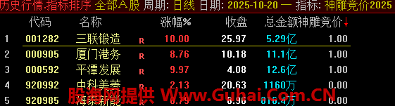 通达信 神雕竞价2025 排序/选股指标 珍藏指标物有所值 信号少当天信号不不变 源码文件分享