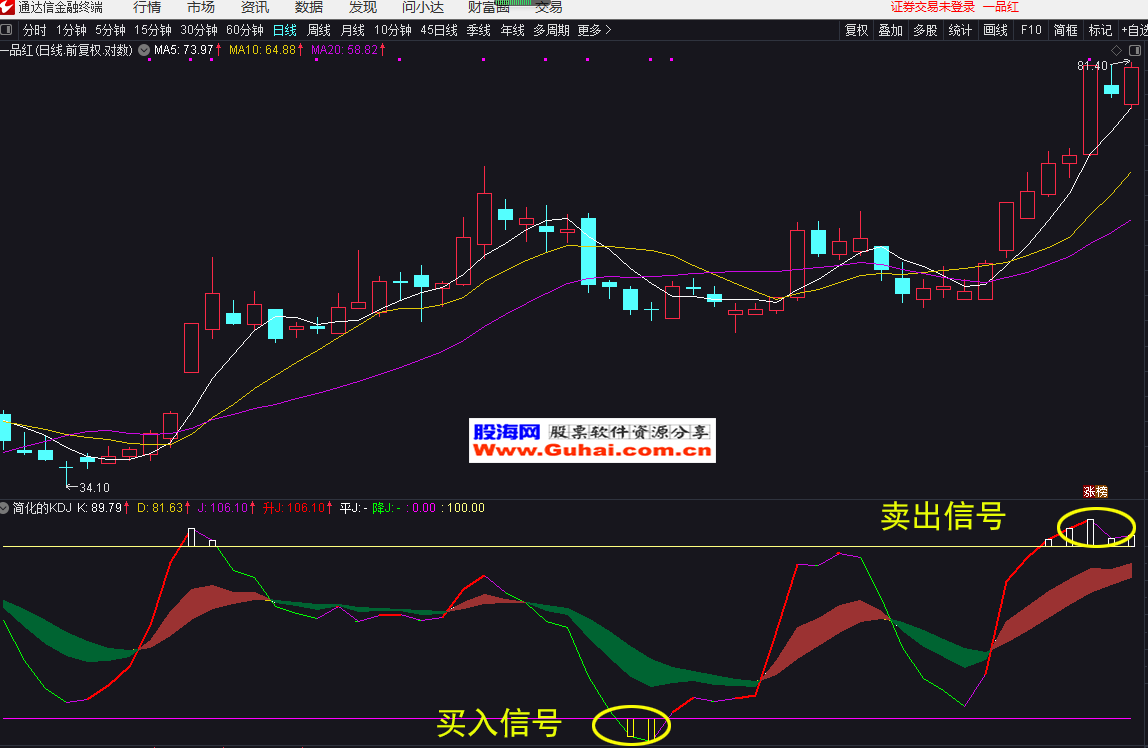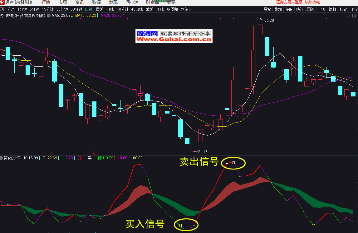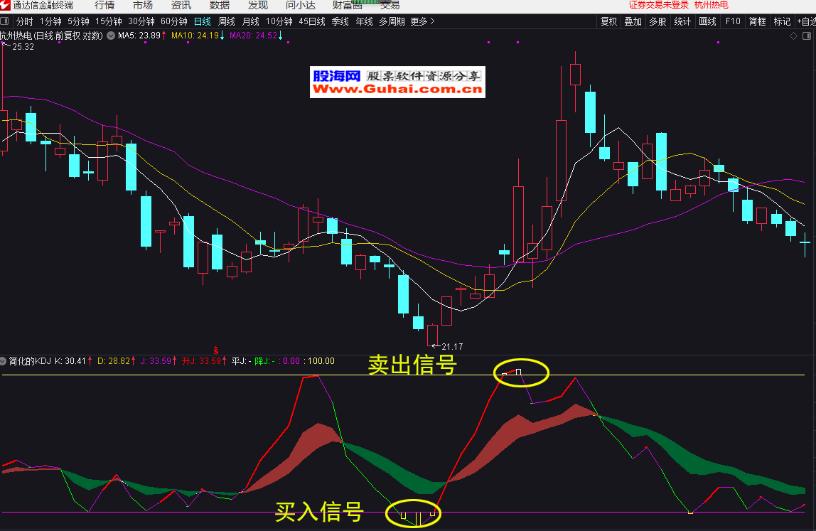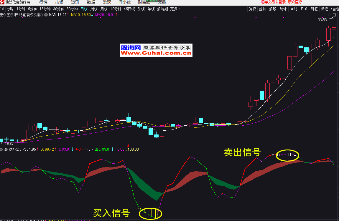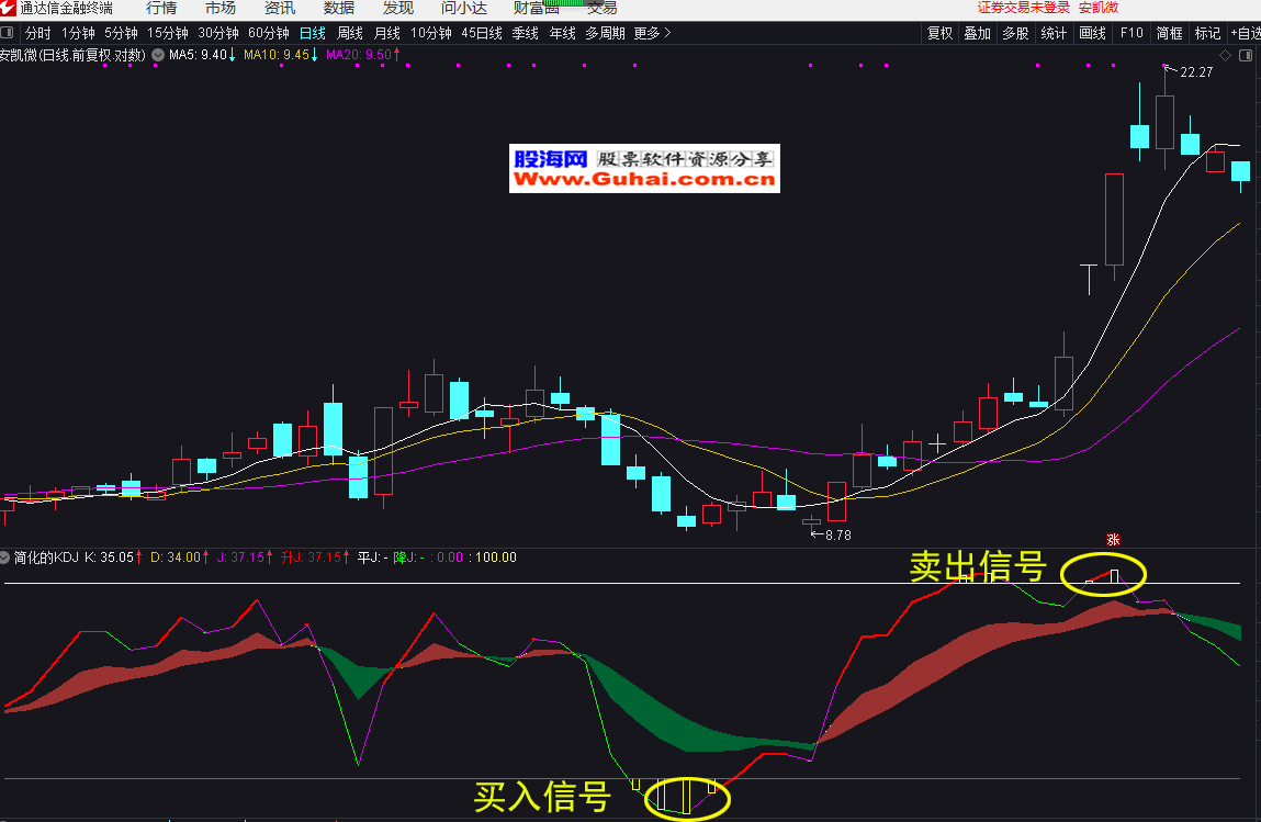 3.简化的KDJ副图指标高位发出信号时短线卖出。
