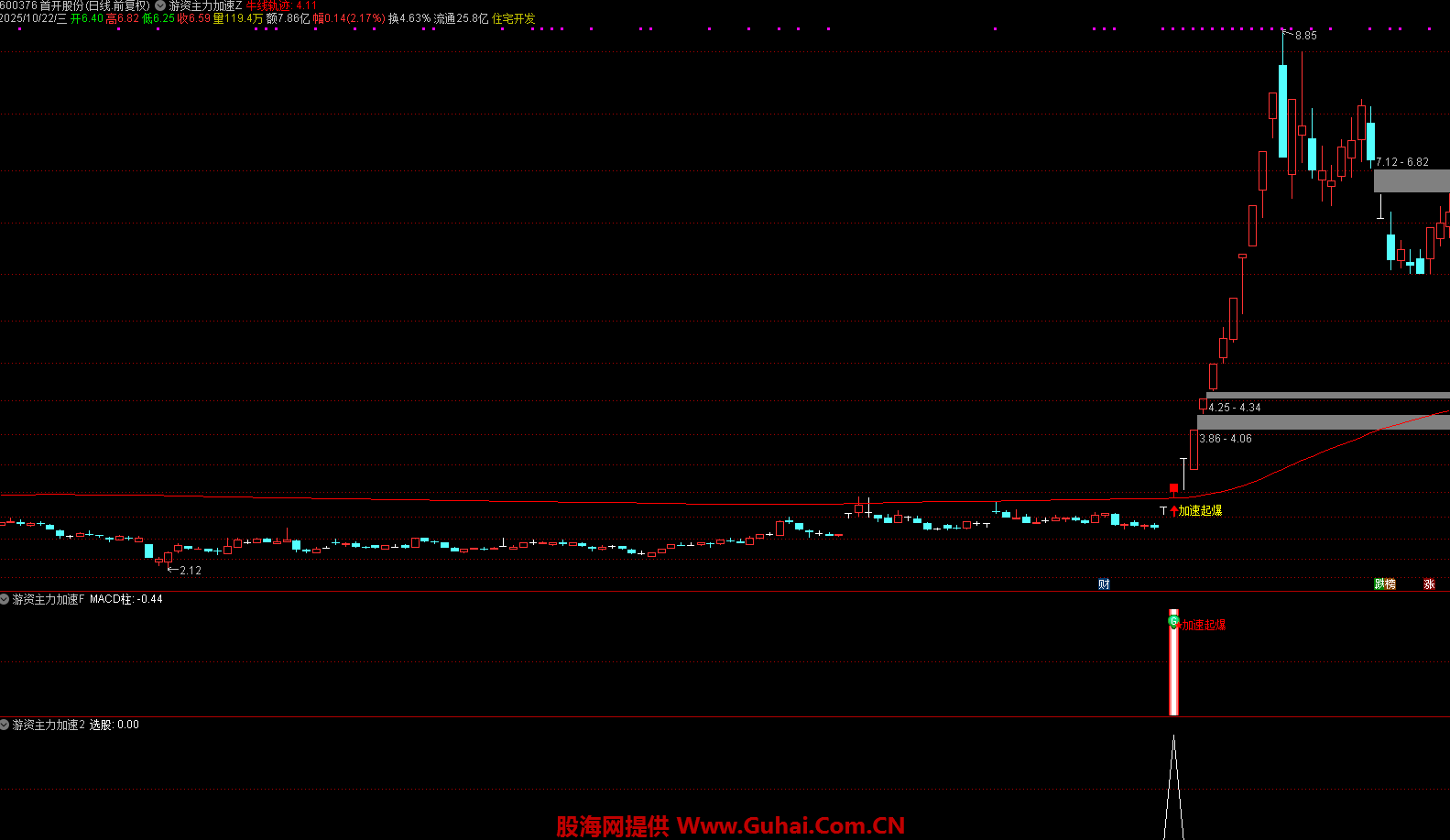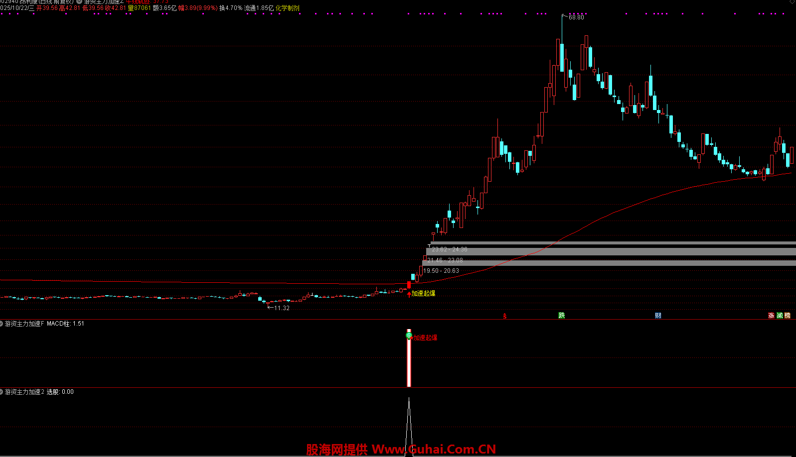 风险收益平衡:加速阶段虽伴随高利润潜力,但需警惕量能萎缩、筹码松动等风险信号。本指标通过主副图动态监控,在拉升初期锁定进场点,在量价背离初期提示离场时机,实现风险与收益的精准平衡。