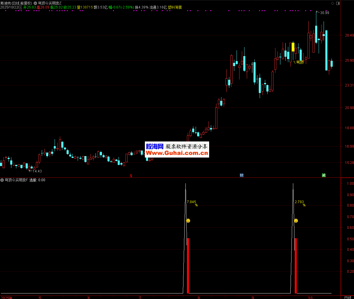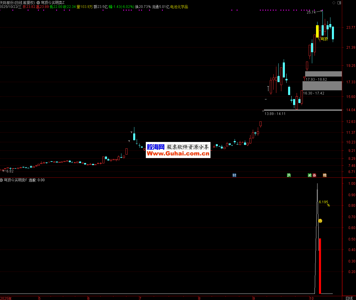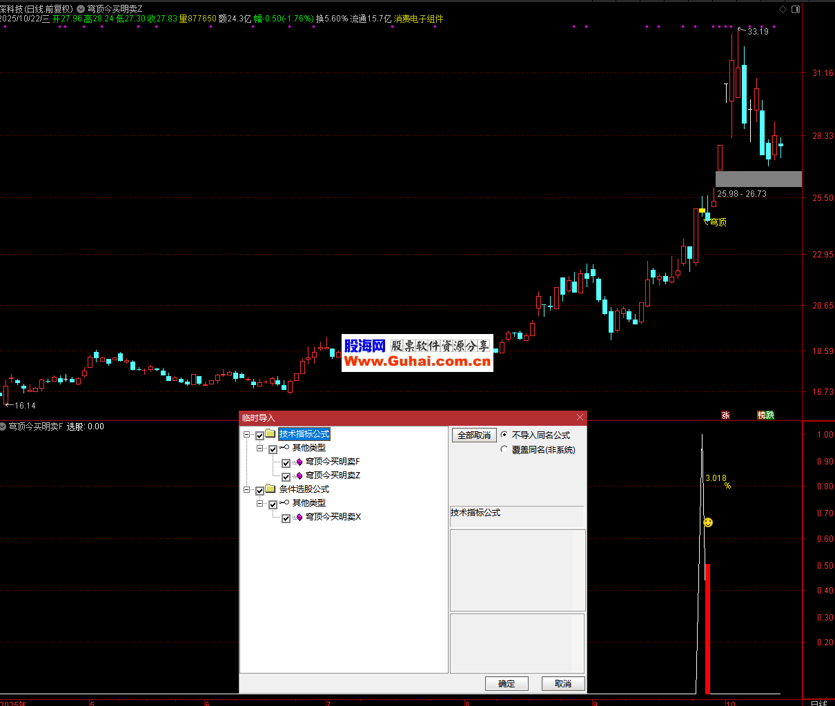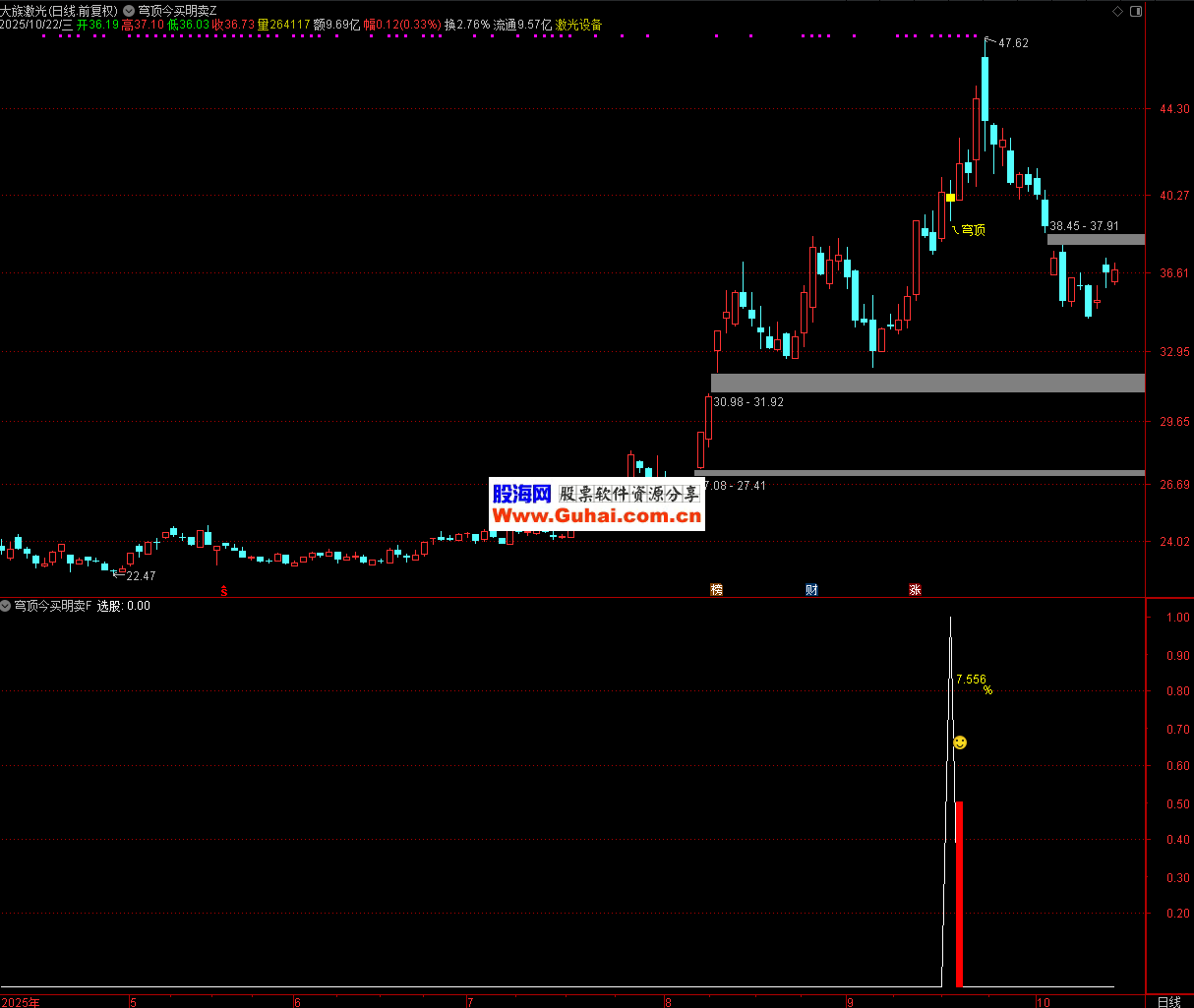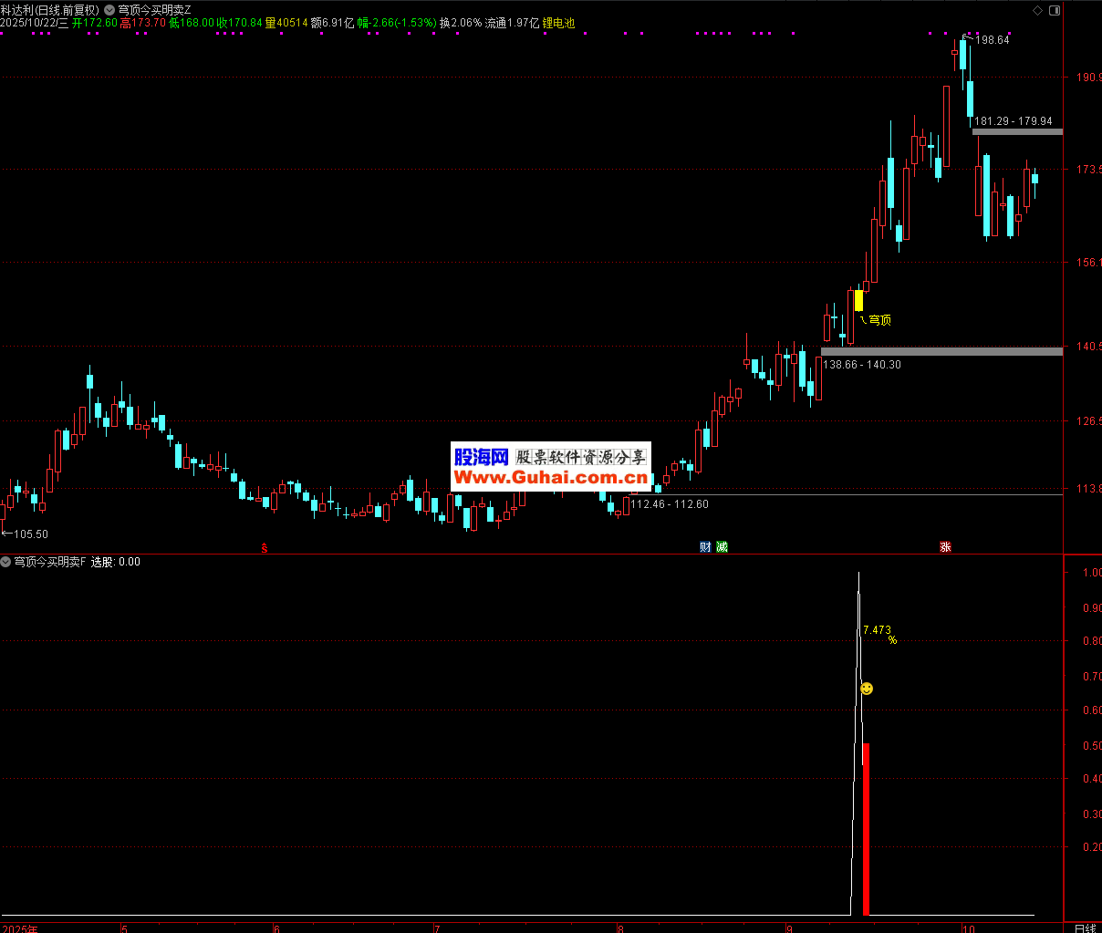 此公式通过量化 “超买后连续调整” 的特征,标记出潜在的短期顶部信号(“穹顶”),帮助投资者在技术分析中快速识别风险点,但实际使用中需结合多维度分析,控制交易风险。
