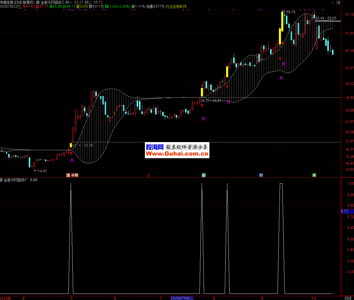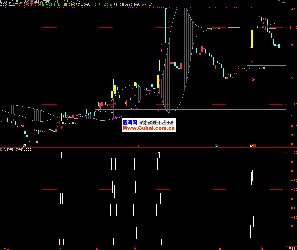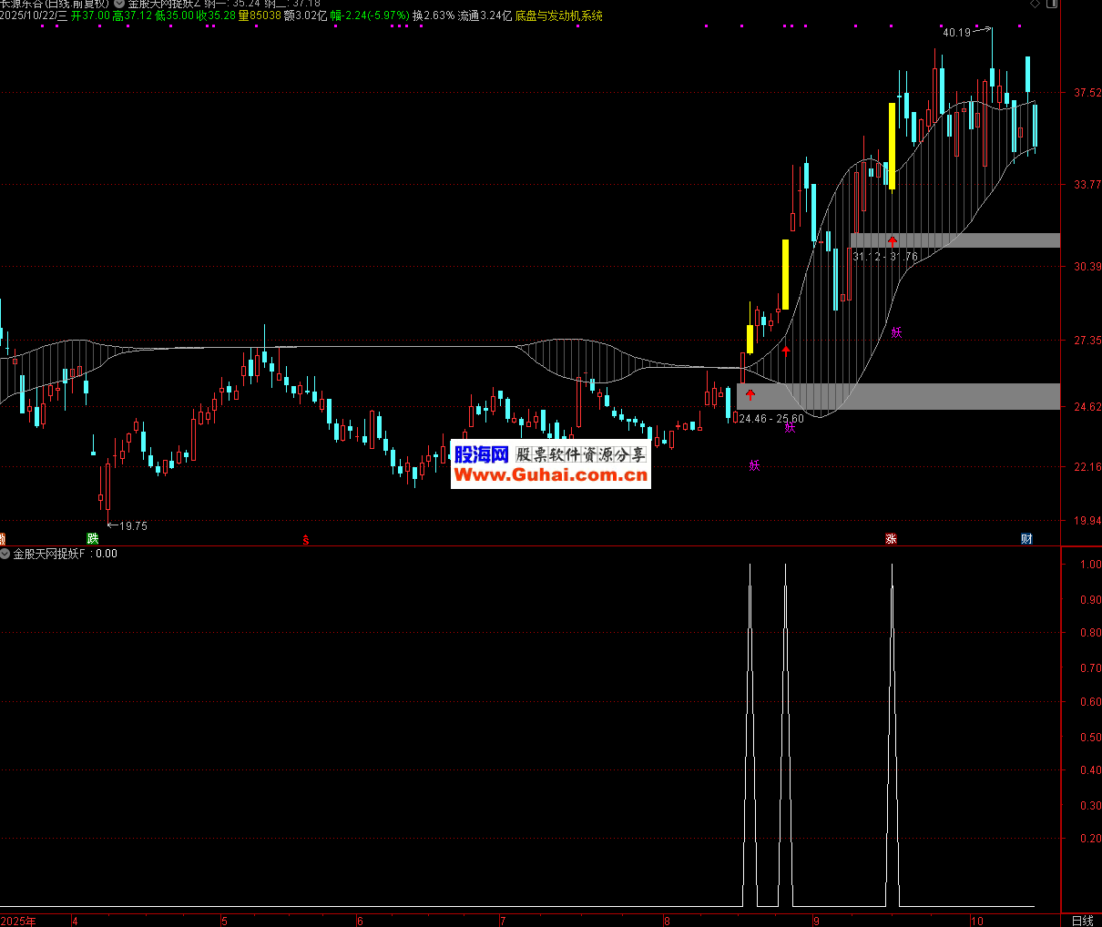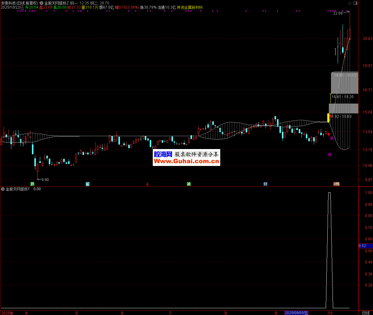 信号含义:“妖” 信号代表个股同时突破中期价格中枢上沿和短期压力位,且伴随 3% 以上的阳线上涨,暗示短期动能强劲,可能进入加速上涨阶段(符合 “妖股” 快速拉升的特征)。