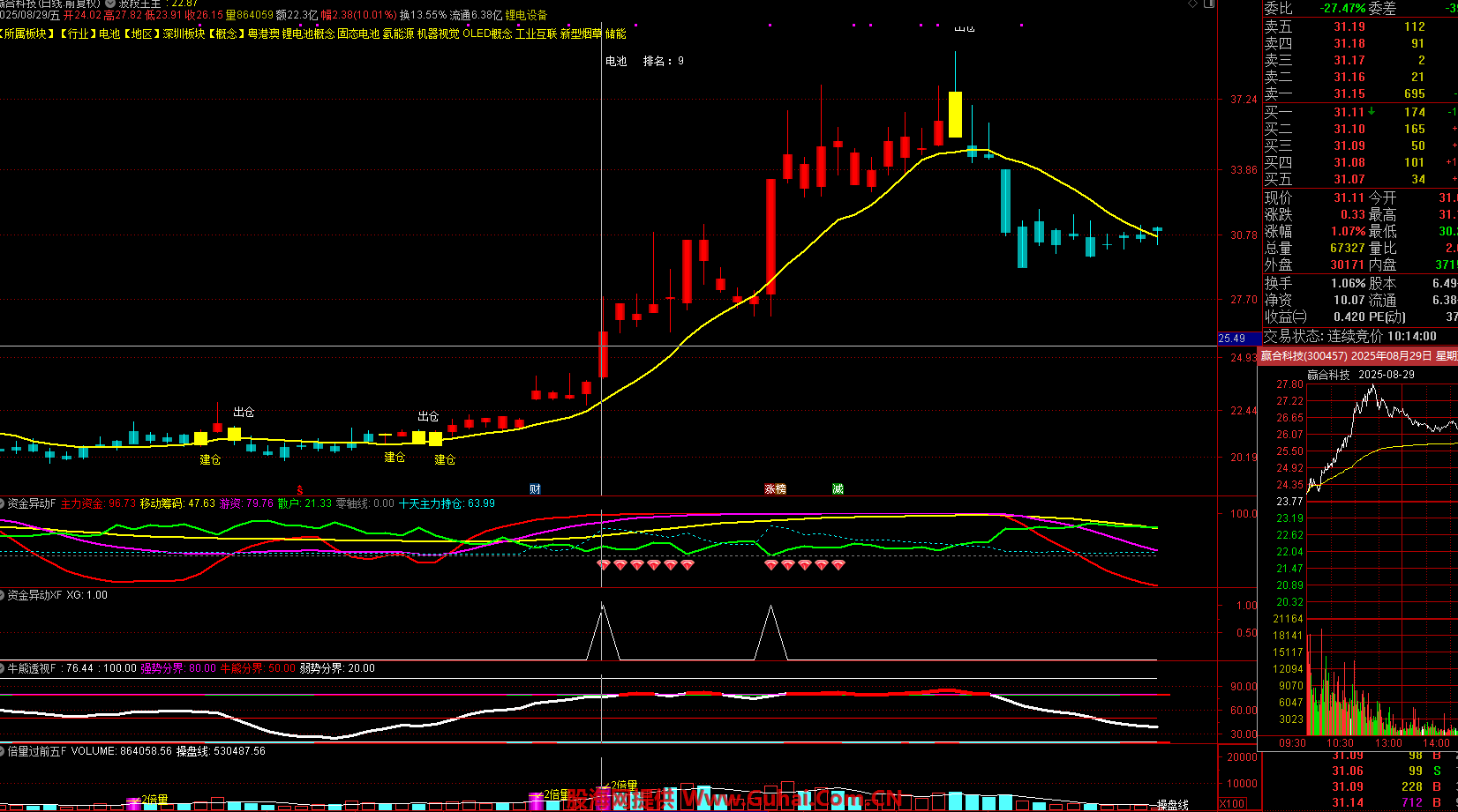 主力资金异动副图可智能分析资金流向及不同资金主体持仓情况,是股市分析实用工具。