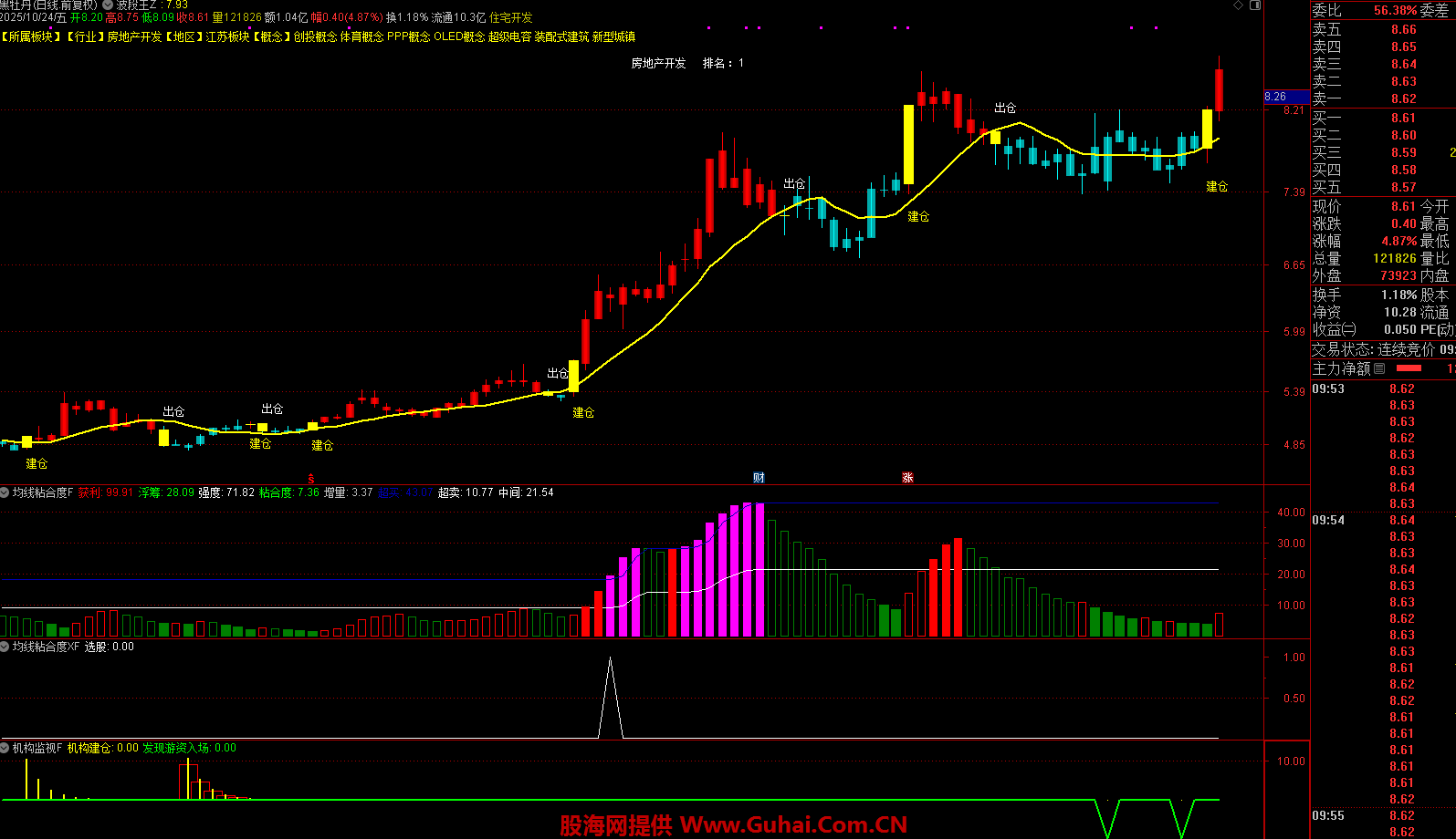 通达信 均线粘合度机构监视 1主3副1选股 多个牛叉指标共振 前期机构大量建仓,紫柱抓妖 源码文件分享