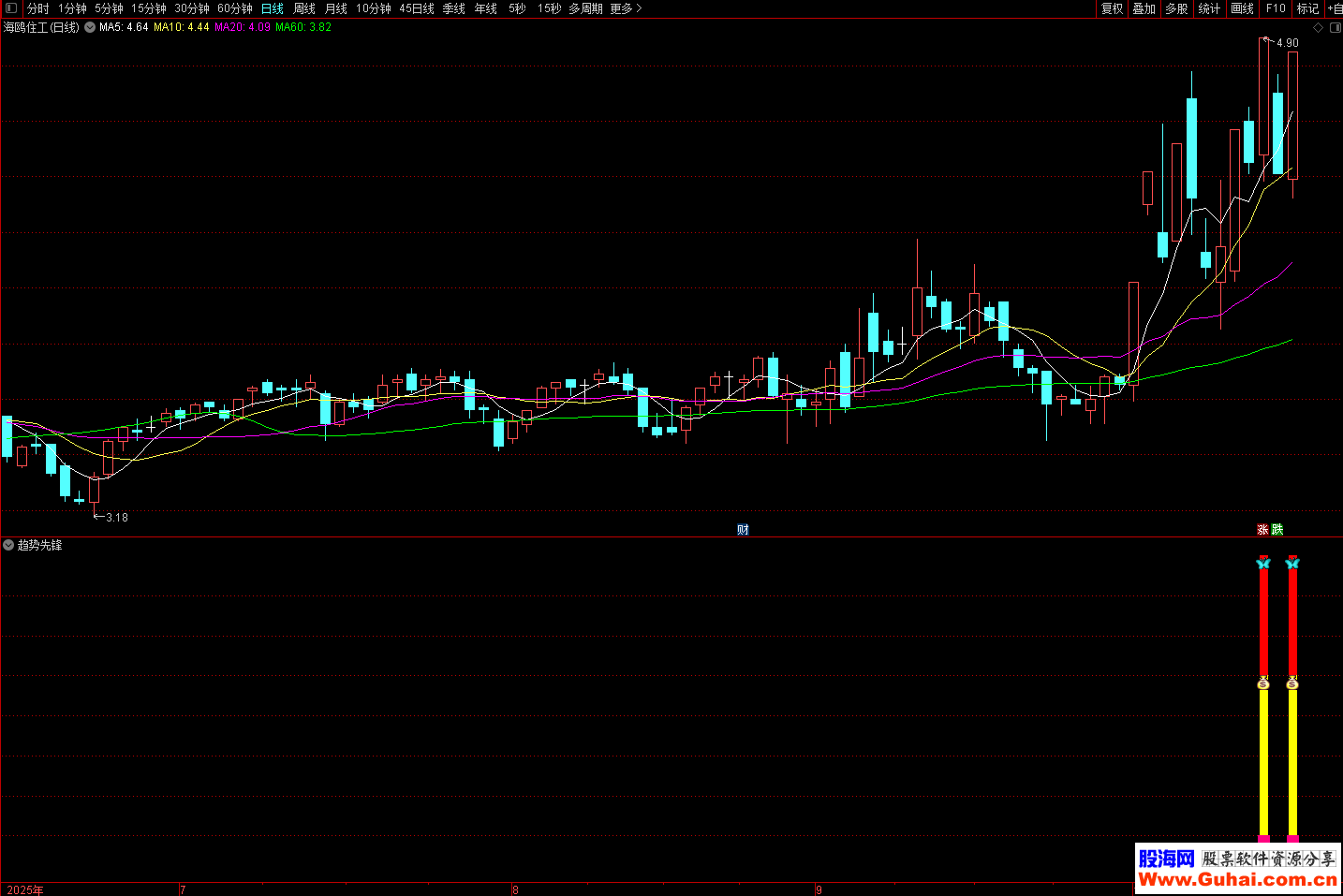 指标适用于寻找处于启动初期的强势股,特别适合趋势跟踪型投资者。当信号出现时,表明股票可能进入加速上升阶段,但需结合大盘环境和个股基本面综合判断。