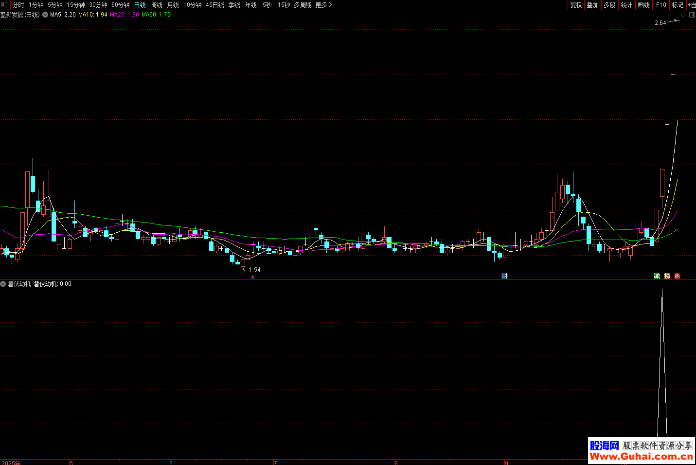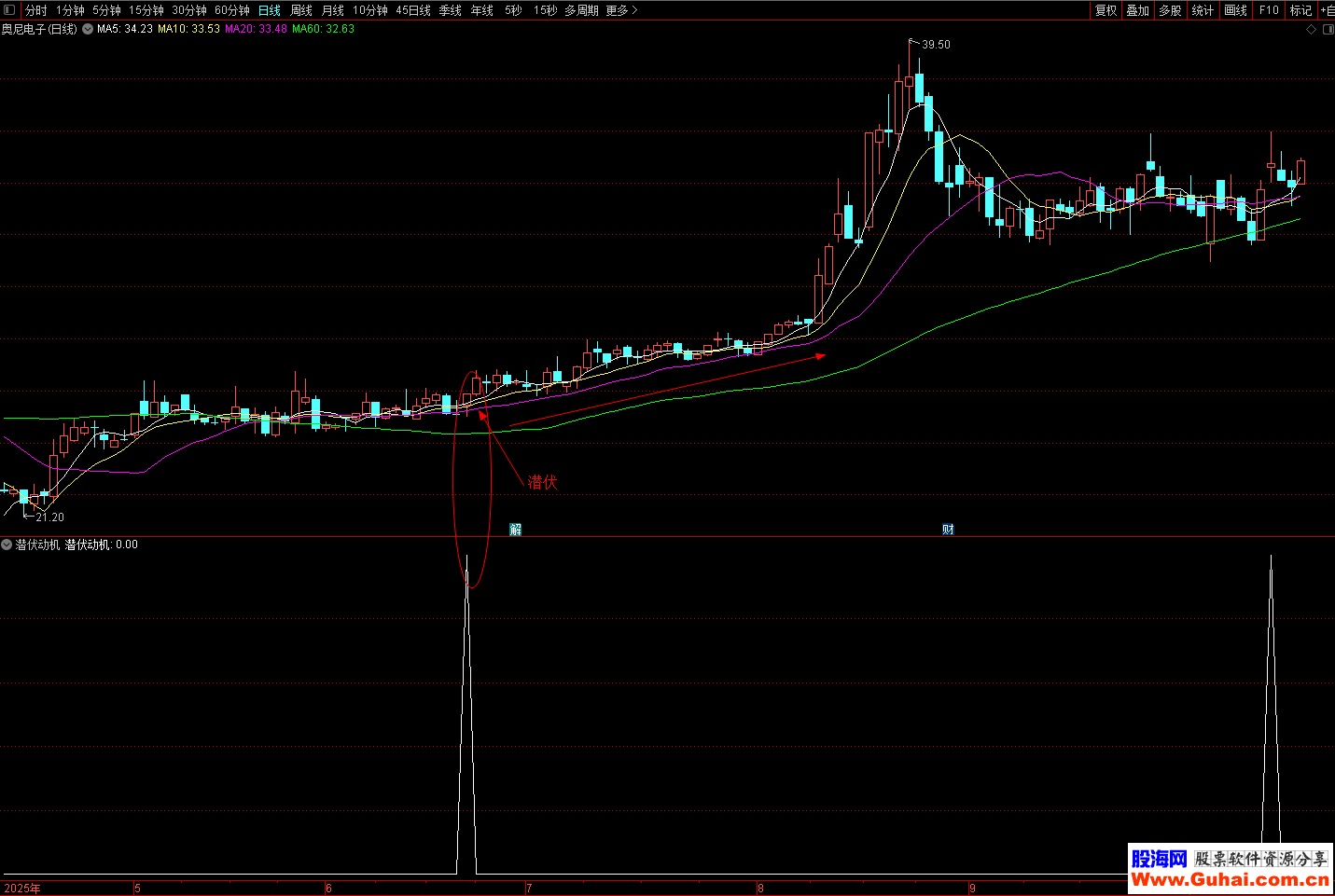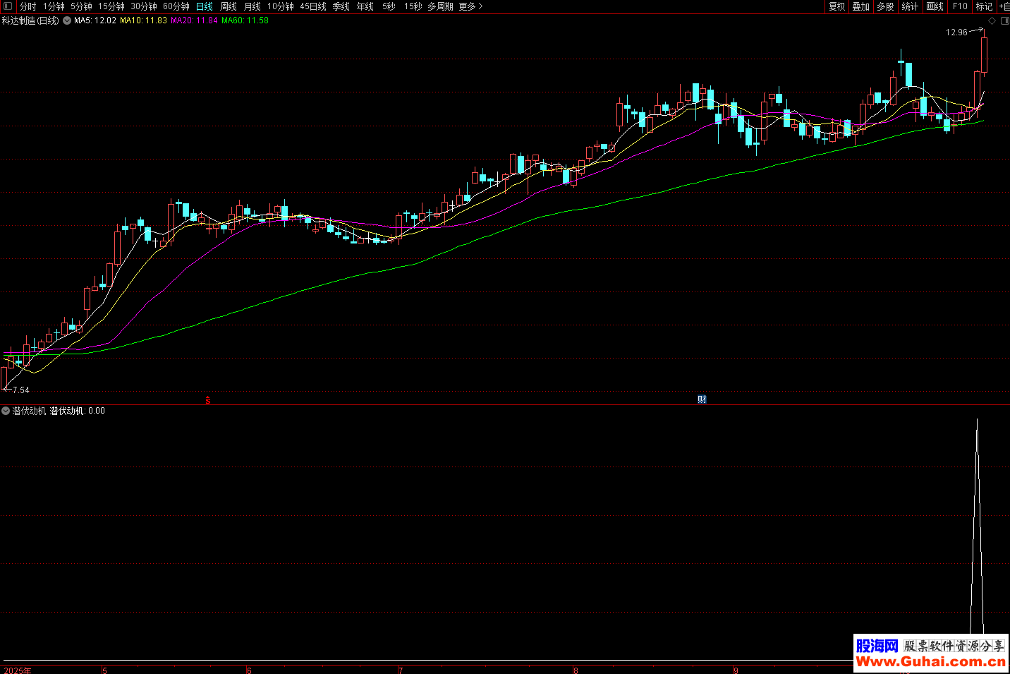 指标适合用于寻找中期趋势中的潜在买入点。当"潜伏动机"信号出现时,表明股票可能正处于主力资金悄悄建仓、趋势即将转强的阶段。