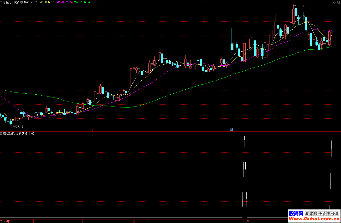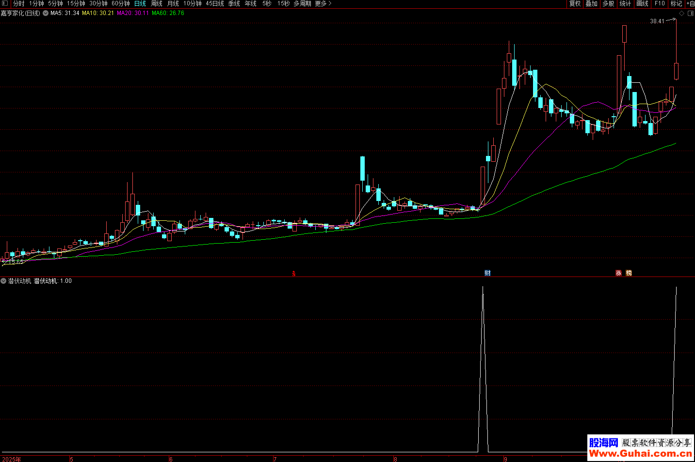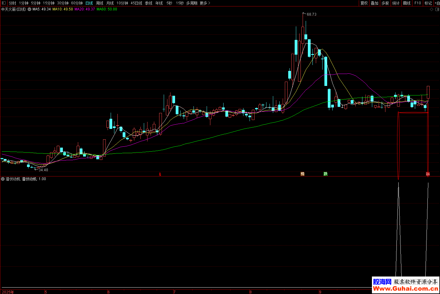 指标适合用于寻找中期趋势中的潜在买入点。当"潜伏动机"信号出现时,表明股票可能正处于主力资金悄悄建仓、趋势即将转强的阶段。