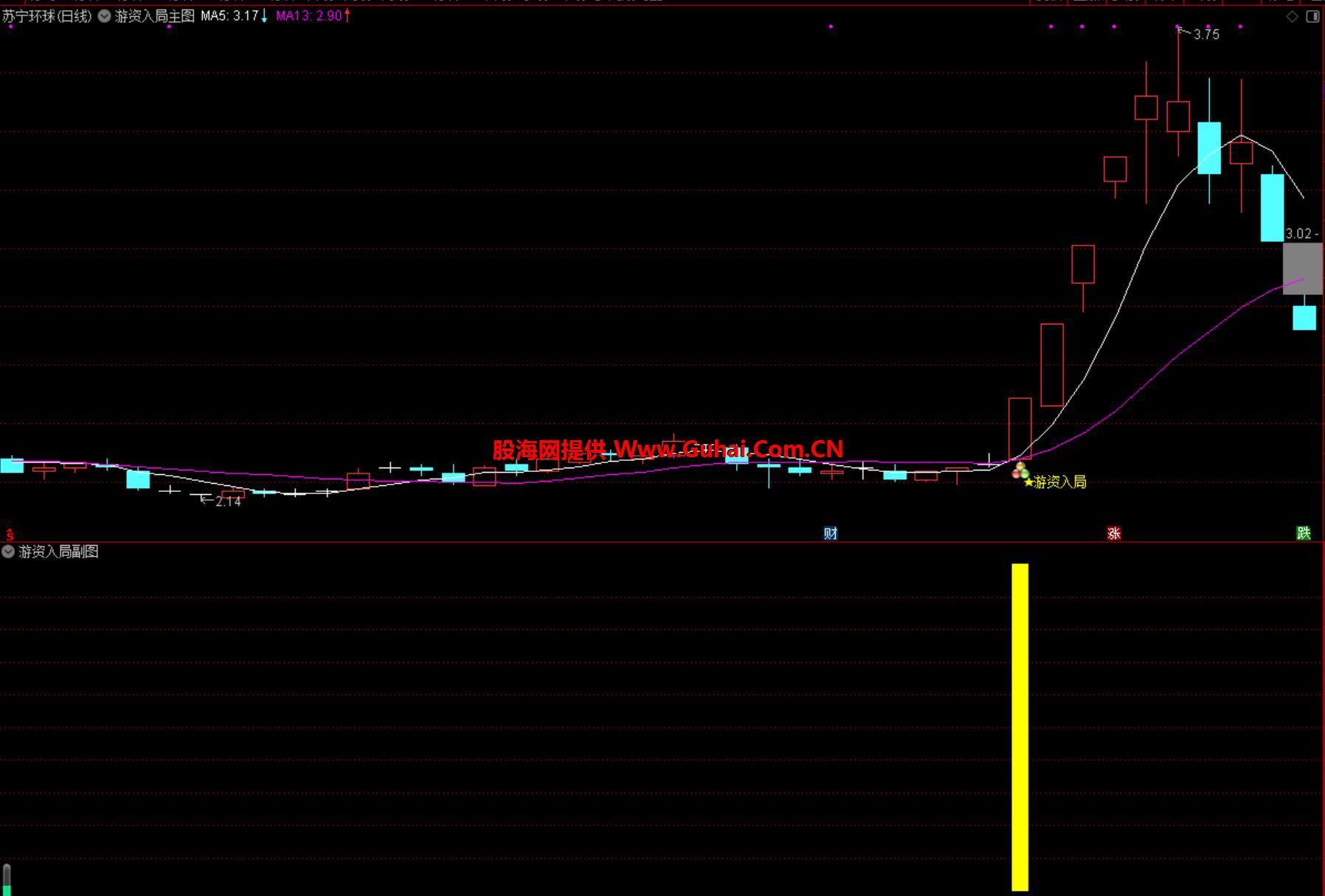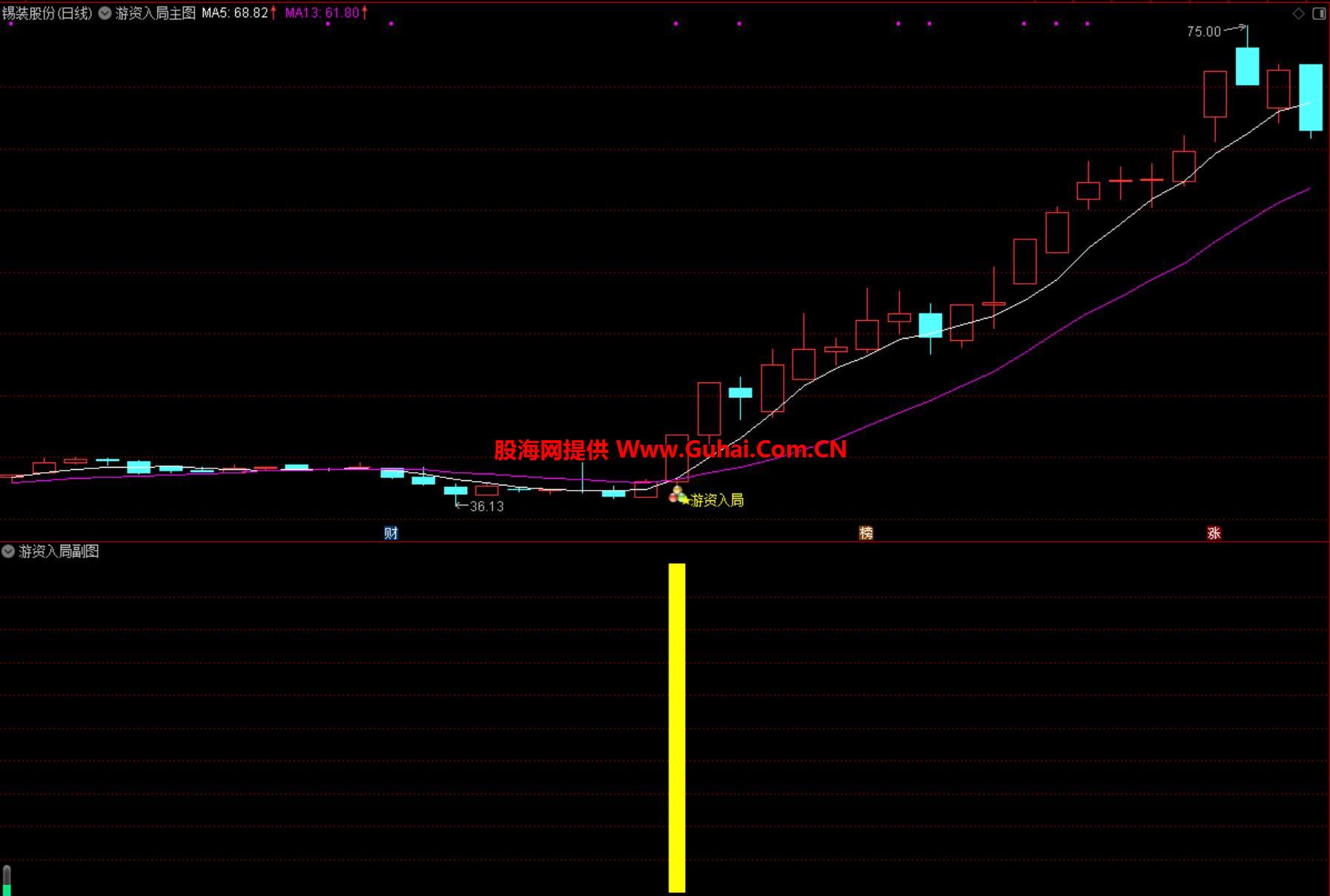 游资入局指标的核心逻辑是通过价格波动和成交量的变化并结合均线系关系,筛选有游资介入强势拉涨停的信号。