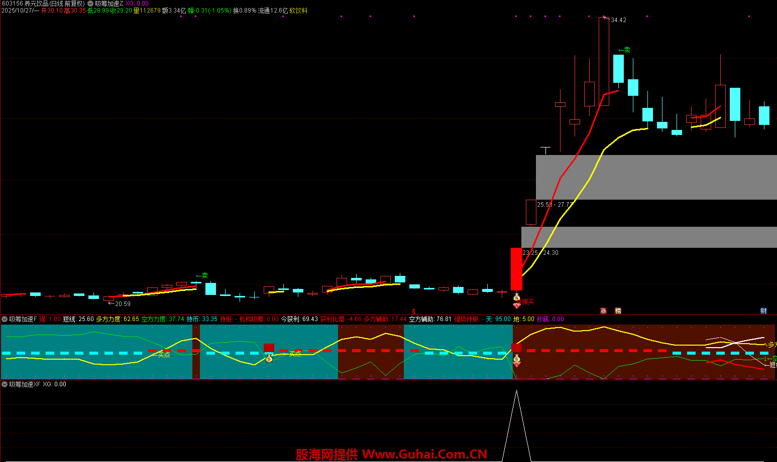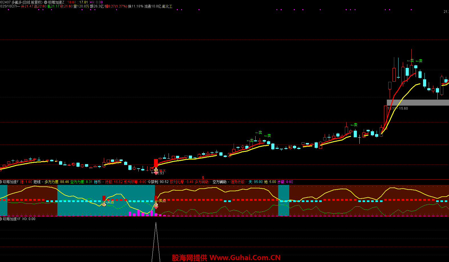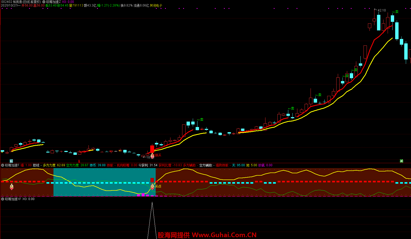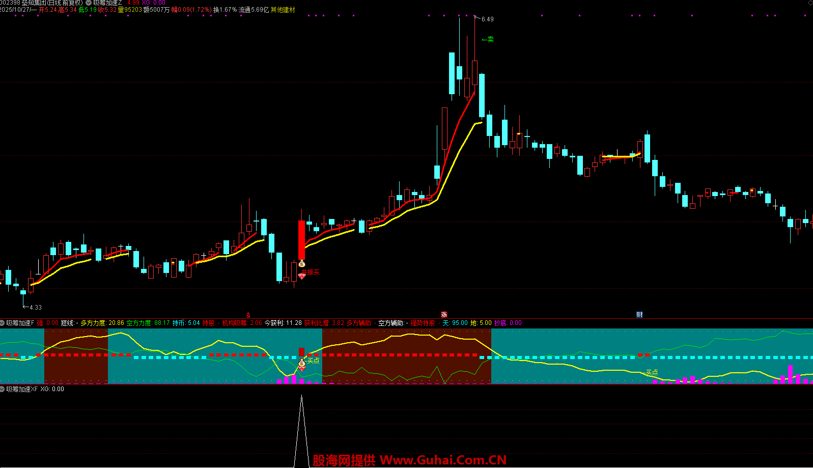 本指标通过价格突破、量能异动、多空力度转换三大技术维度,识别股价走势中的多重共振信号。系统自动标注"共振信号",提示潜在趋势启动机会,助力投资者把握机构吸筹加速的关键节点。