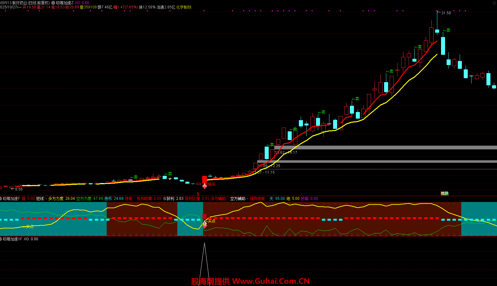 黄色粗线:10日均线(中期趋势),收盘价上方显示